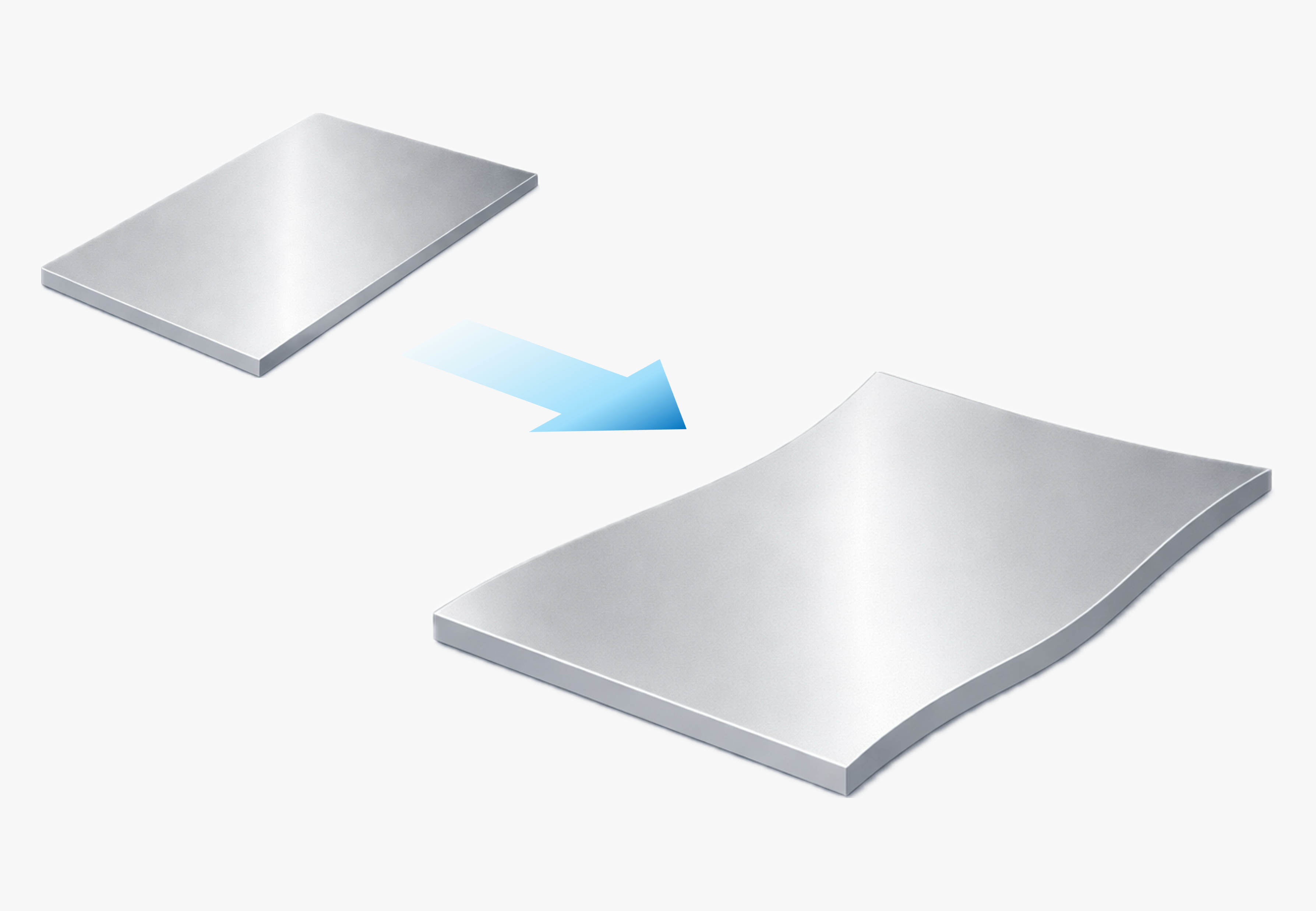 板厚が薄い製品(部分的に薄肉となっている箇所も含む)や、刃物などの鋭利な形状を有する部品については、焼成時の加熱による熱膨張や下地処理工程(サンドブラスト)の影響により、基材の変形や破損が生じる可能性があります。これらは、素材・形状・板厚の条件によっては避けられない現象です。