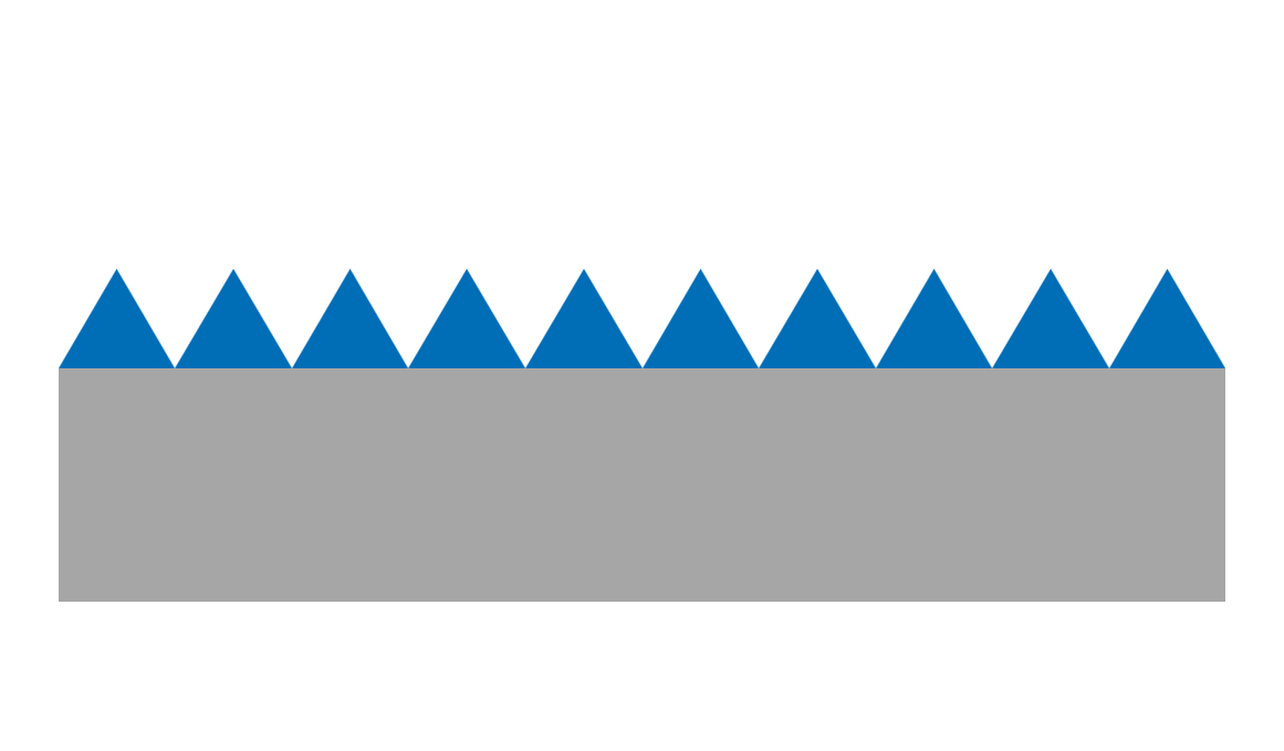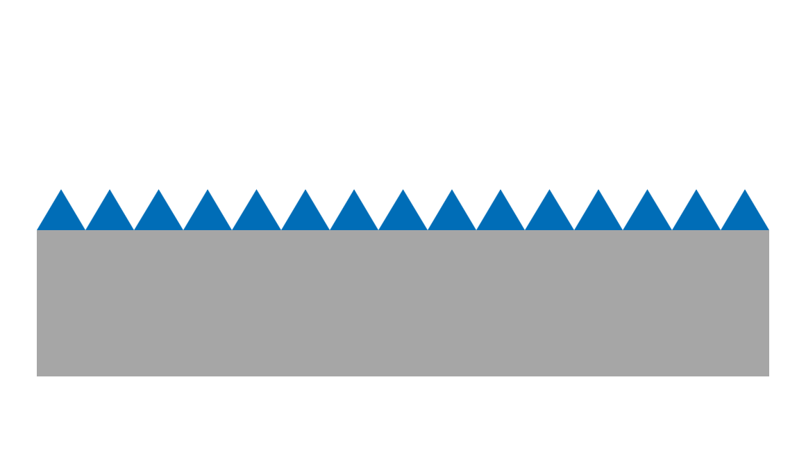 ブラストや金属溶射により凹凸を形成することで、接触する粘着物は凸部の頂点部分のみ接触します。これにより実際の接触面積が大幅に低下し、粘着物の付着を抑制します。