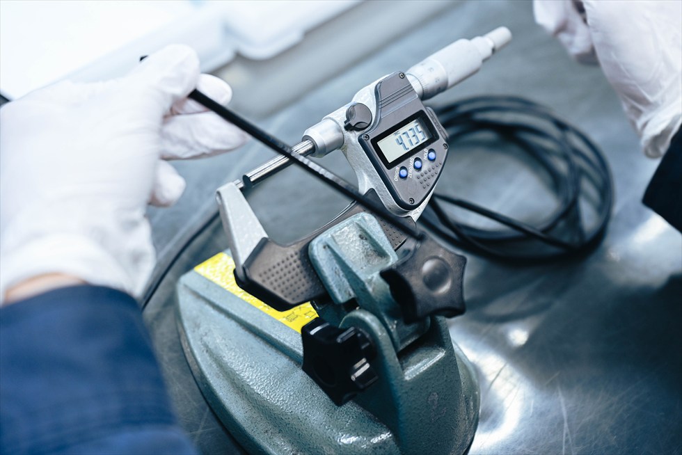 マイクロメータ最小単位0.001mm、ノギス最小単位0.01mmで精密な寸法管理を行います。